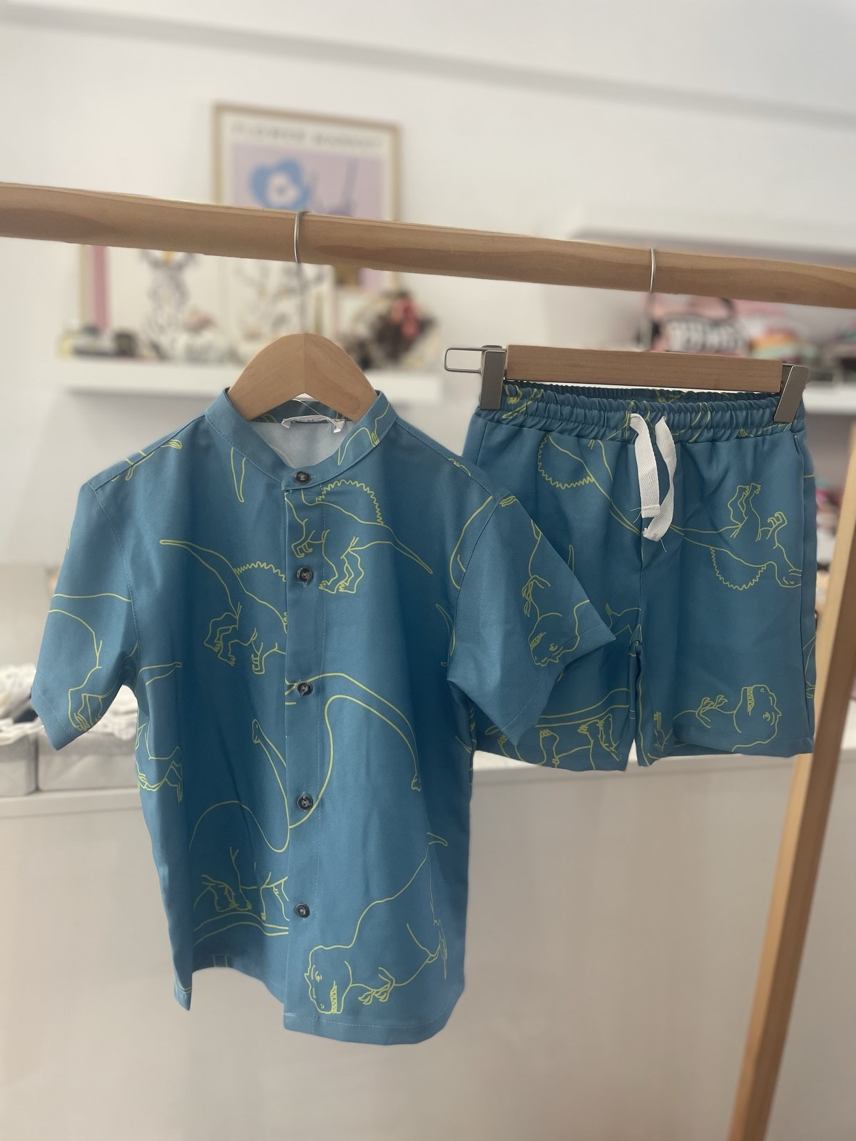 Σετακι με βερμούδα και πουκαμίσα allover printed dinosaur ποσότητα