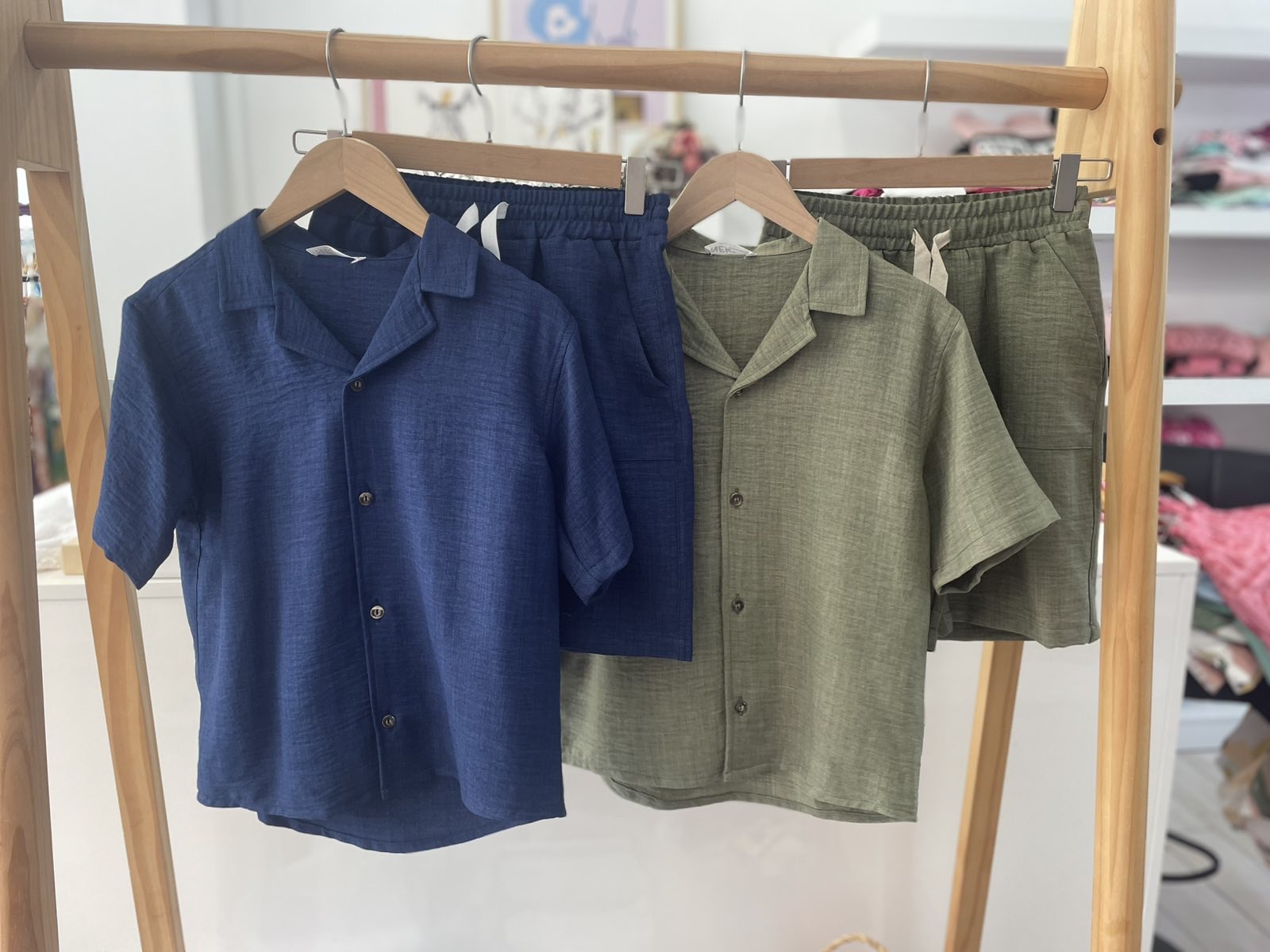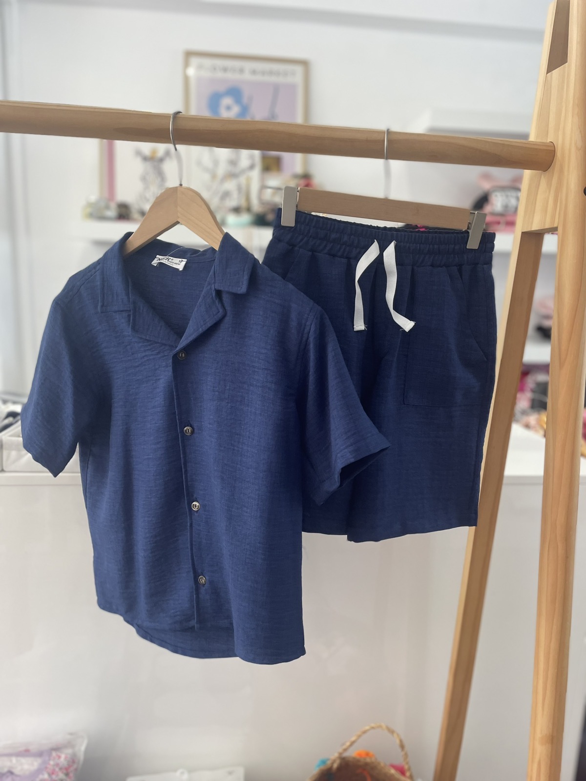 Λινό σετ με βερμούδα και πουκάμισο / μπλε ποσότητα