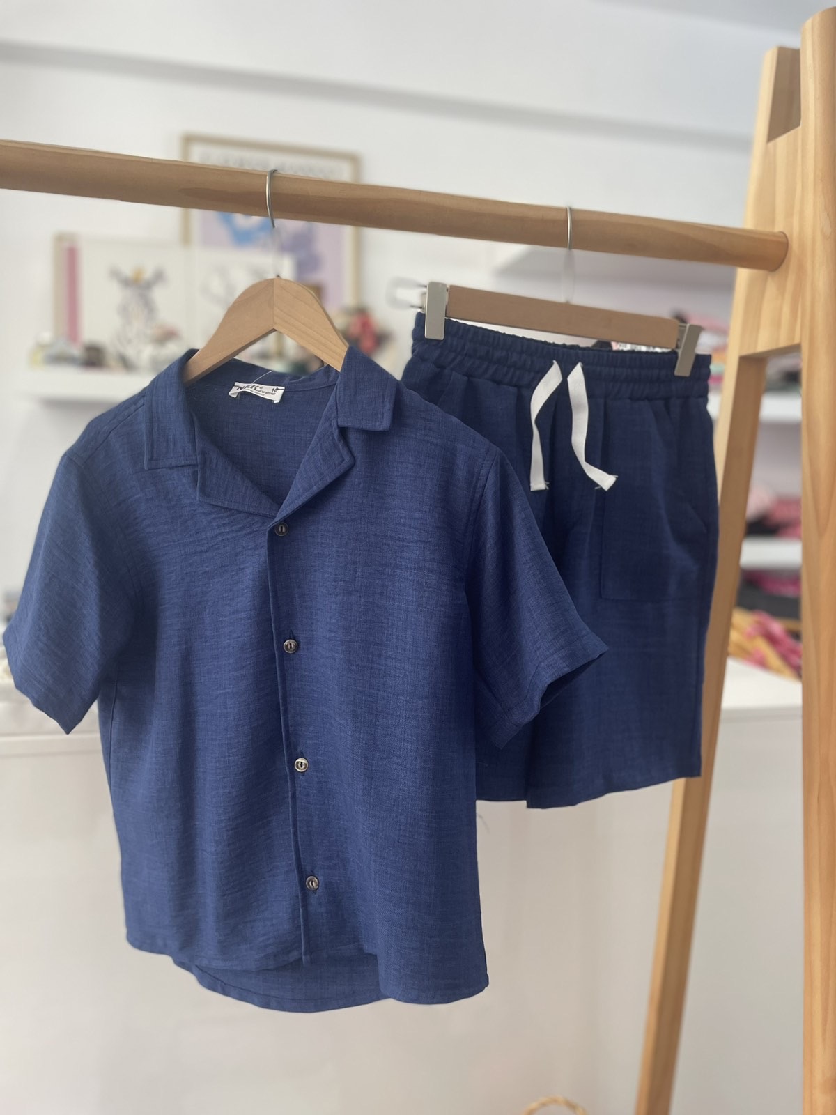 Λινό σετ με βερμούδα και πουκάμισο / μπλε