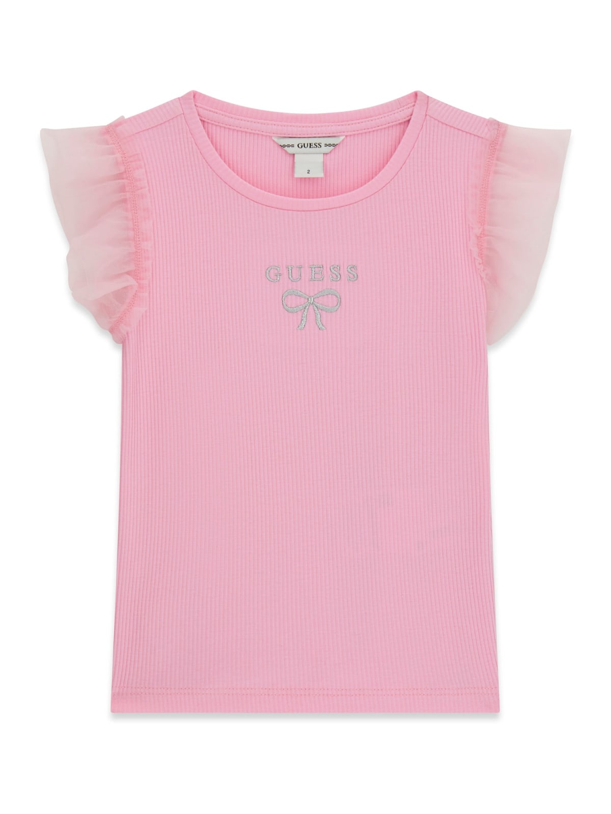 ΜΠΛΟΥΖΑ ΚΟΝΤΟΜΑΝΙΚΗ ΧΡΩΜΑ BLOOMING AZALEA ΜΕ ΤΟΥΛΙ ΣΤΑ ΜΑΝΙΚΙΑ & ΜΕ ΤΥΠΩΜΑ GUESS ME ΣΤΡΑΣ
