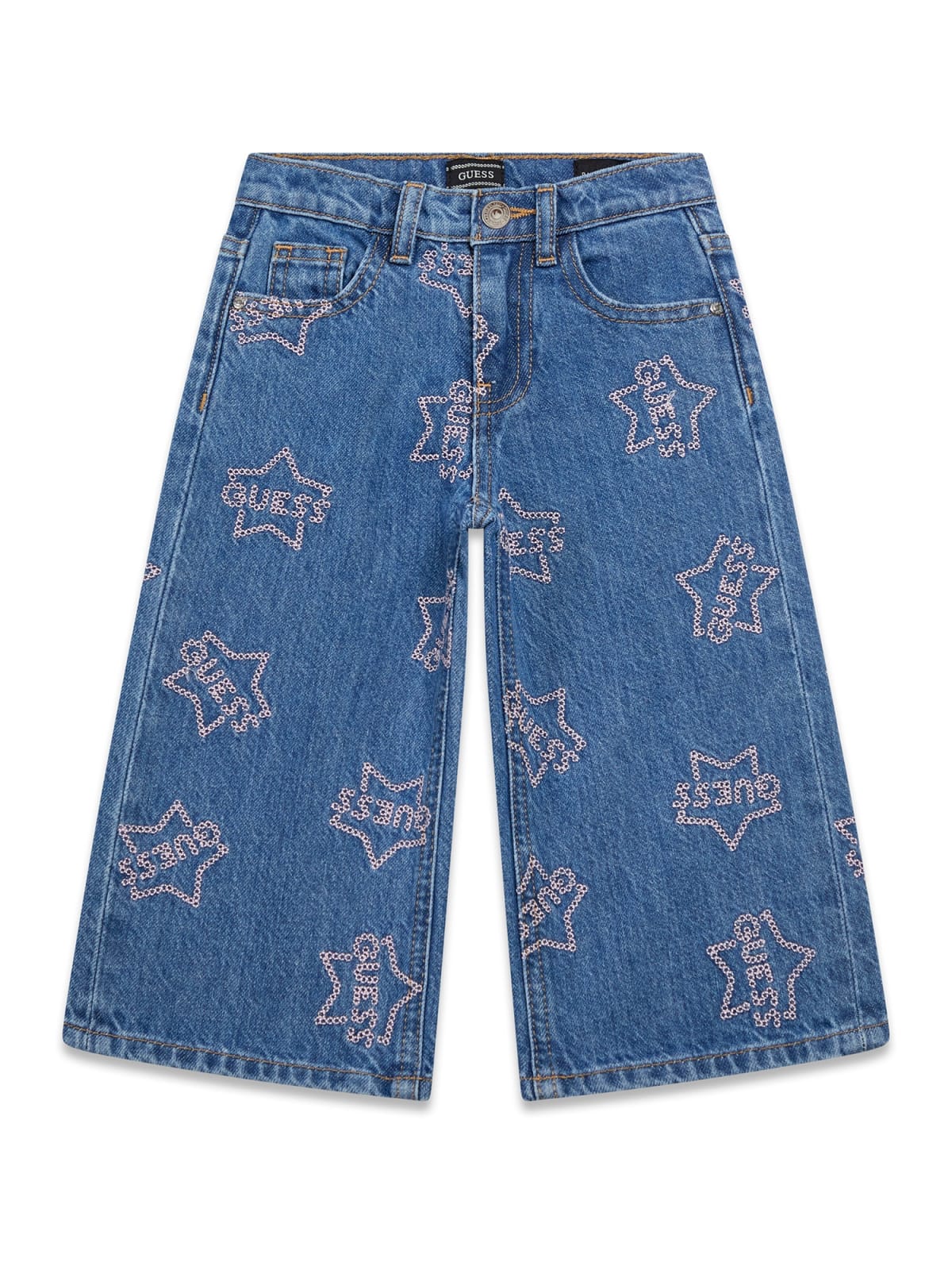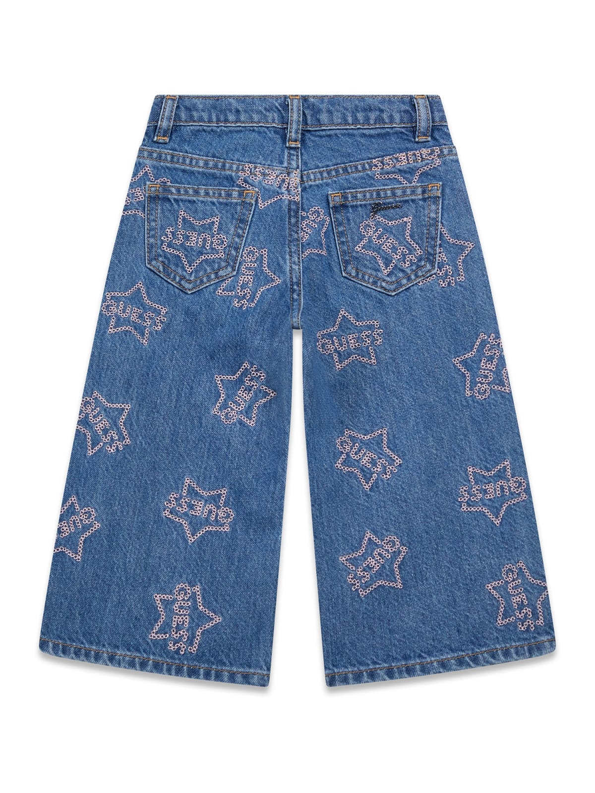 Jean παντελόνι καμπάνα με κέντημα allover logo guess και γκλιτερ